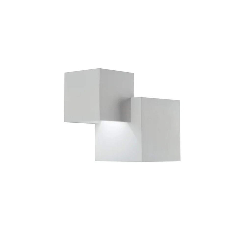 Questa applique in gesso bianco verniciabile si distingue per il suo originale design a doppio cubo sovrapposto. Con dimensioni di 11,5 x 19,5 cm, è compatta ma visivamente dinamica, perfetta per chi cerca un’illuminazione architettonica moderna e decorativa.
