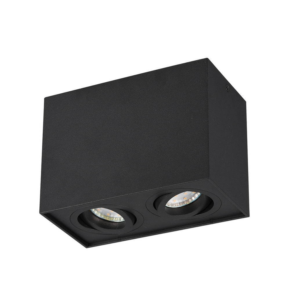 Plafoniera Biscuit rettangolare in metallo nero opaco con luci orientabili. Perfetta per illuminare bar, hotel, negozi e spazi moderni. Misura 17×9×12 cm e utilizza lampadine GU10 sostituibili (non incluse). Design essenziale e grande versatilità luminosa.
