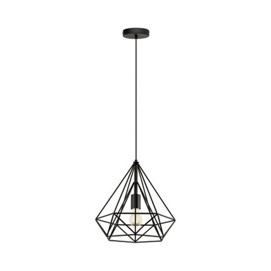 Lampadario a sospensione Cage in metallo nero a gabbia forma diamante. Larghezza 37 cm, altezza regolabile fino a 160 cm. Portalampada per 1 lampadina E27 (non inclusa). Ideale per cucine, soggiorni, loft, bar e ristoranti in stile industriale e vintage.
