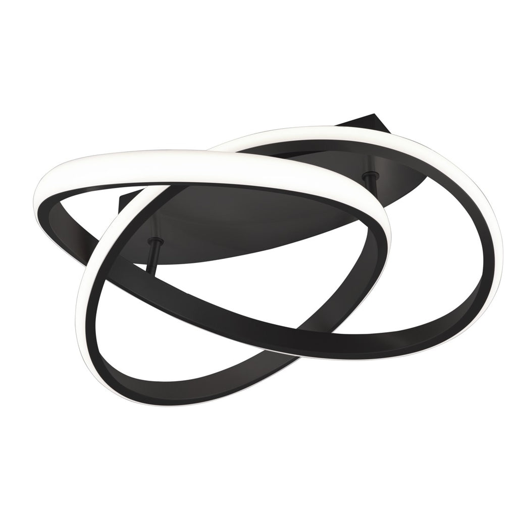 La plafoniera LED Course da 18W offre 2400 lumen di luce bianco caldo 3000K. Realizzata in metallo grigio antracite con design curvo largo 45 cm, utilizza tecnologia SwitchDimmer per regolare tre livelli di luminosità tramite interruttore, senza dimmer esterni.