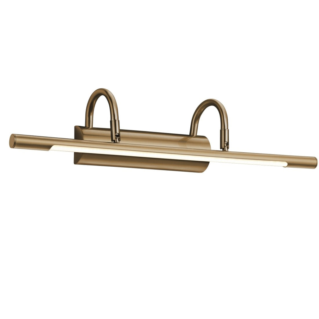 Lampada con fissaggio a parete, applique in metallo finitura ottone anticato. ideale per l'illuminazione di quadri. Larghezza 48 cm. LED 8W, 600 lumen, luce calda 3000°K. Garanzia fornitore 5 anni