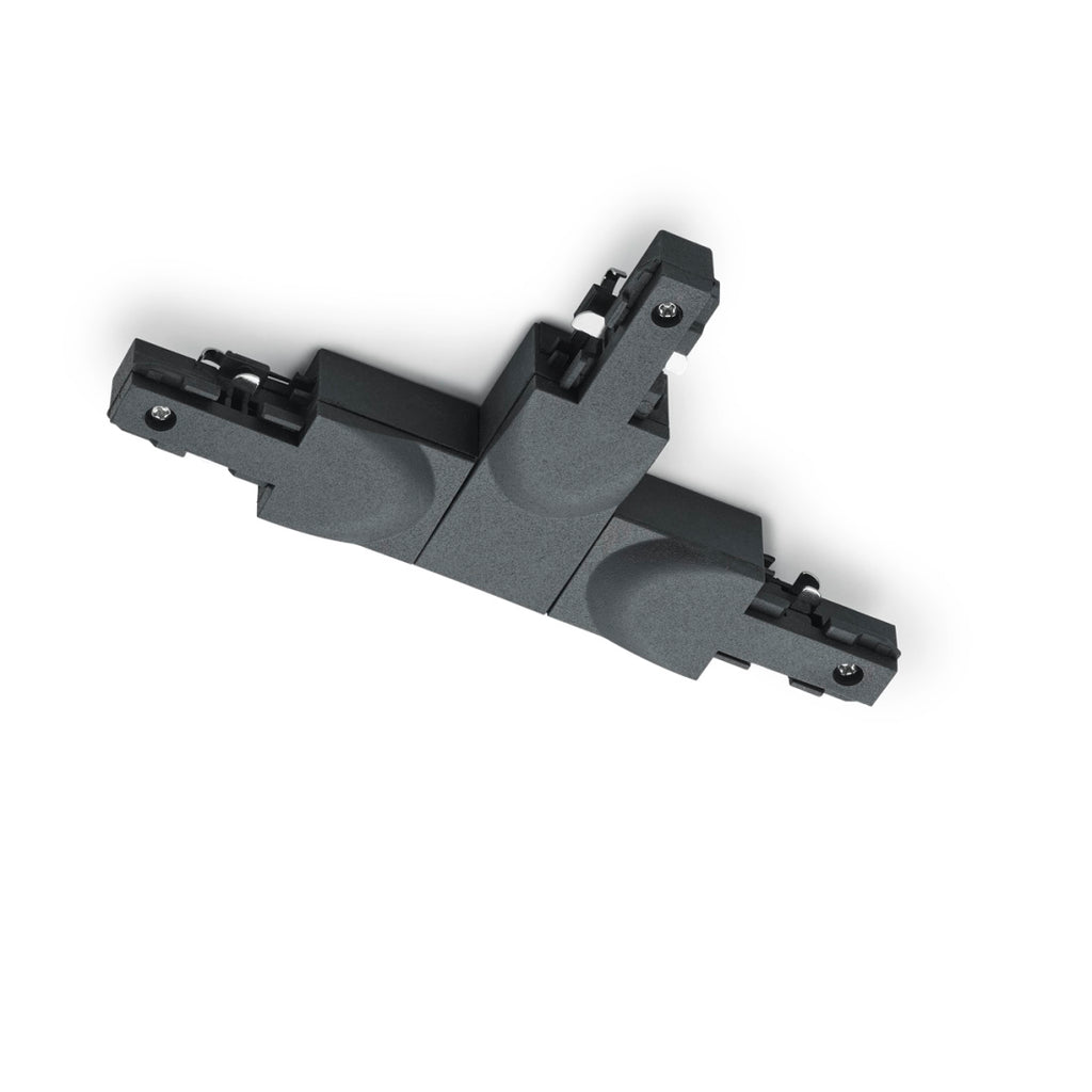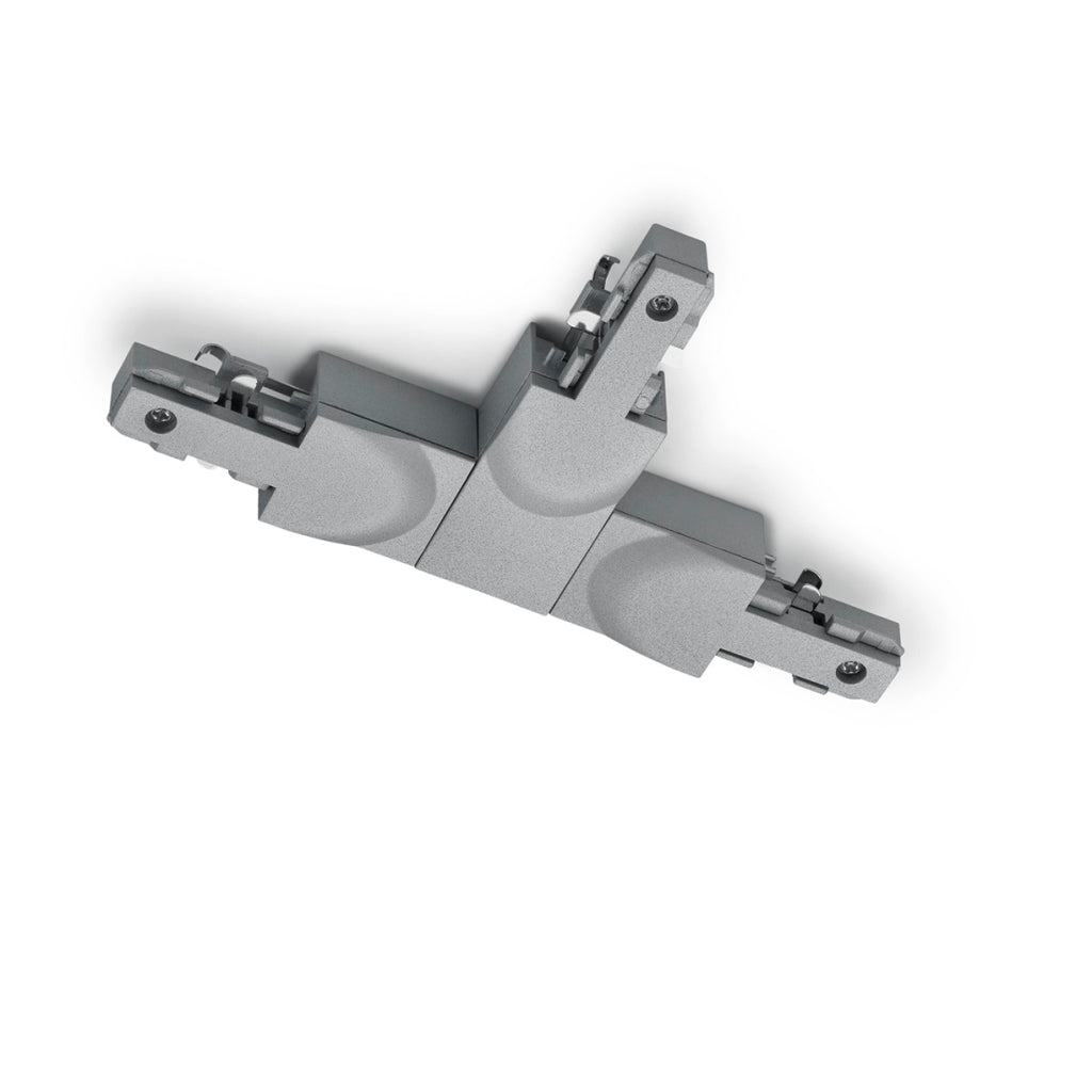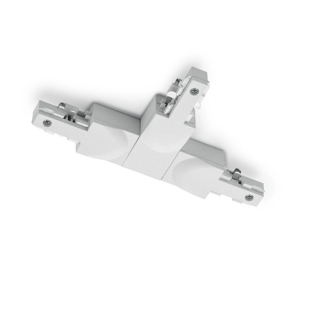Connettore ad L, collega tra loro due binari ad angolo retto, con linea del conduttore di protezione esterna o interna. Attenzione in fase di progettazione affinchè il conduttore di protezione sia collegato in modo continuo. Disponibile in colore nero, bianco ed acciaio satinato.