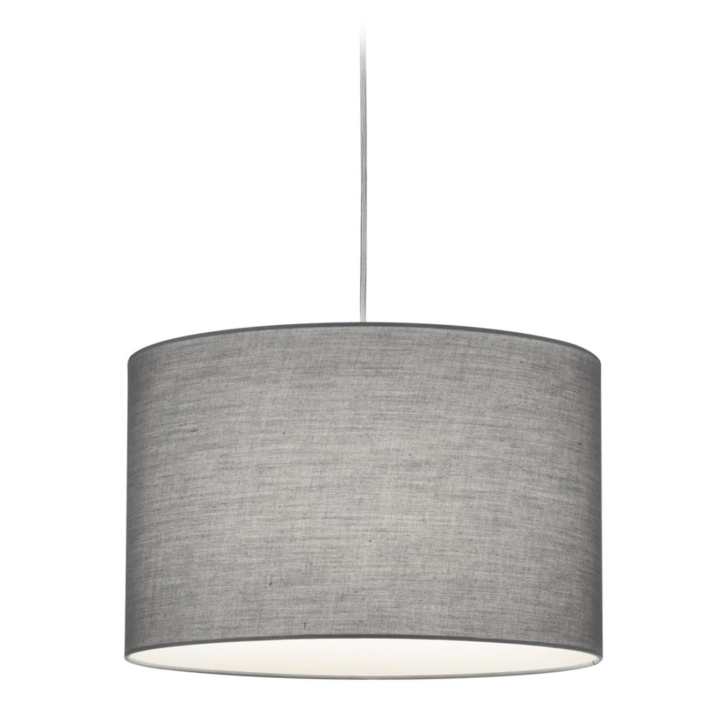 Sospensione Hotel con paralume cilindrico in tessuto grigio, diametro 40 cm, per sistema a binario bifase DUOline 230V componibile. Altezza regolabile fino a 180 cm. Attacco E27 per lampadina (non inclusa). Perfetta per creare un’illuminazione morbida e raffinata in salotti, camere, ristoranti e ambienti professionali.