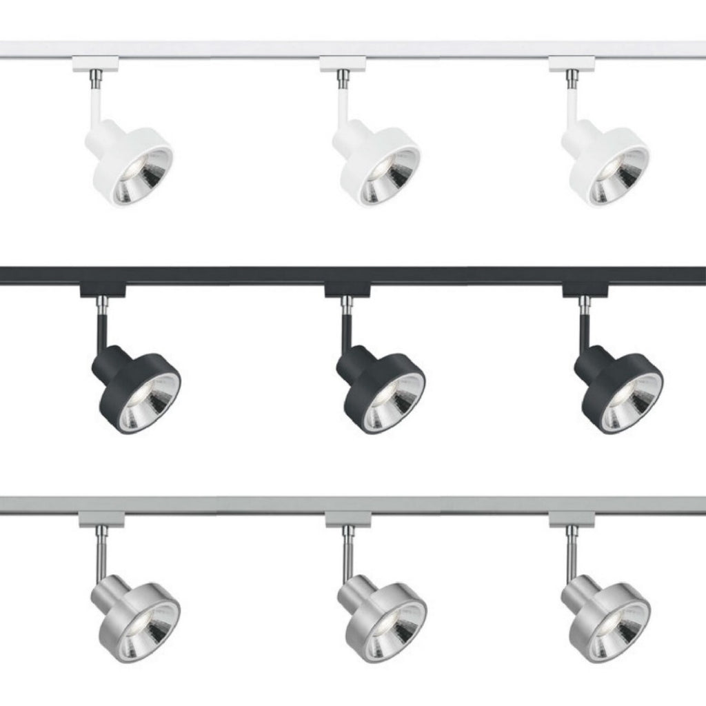 Spot orientabile Leon per sistema a binario bifase DUOline 230V componibile. Compatibile con lampadina GU10 (non inclusa). Realizzato in metallo, disponibile nei colori nero, bianco e acciaio satinato. Ideale per creare punti luce direzionabili in cucine, vetrine, showroom e ambienti professionali.