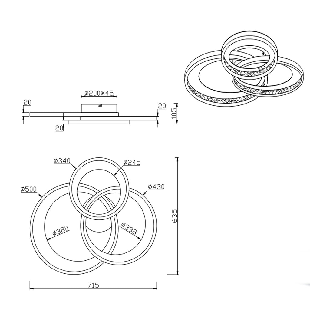 Illuminazione moderna a tre anelli con luce calda