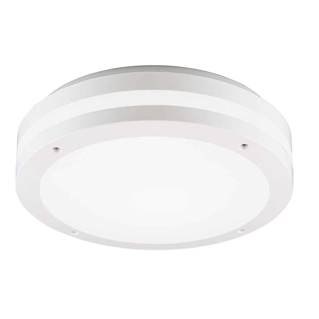 Plafoniera in plastica bianca con diametro di 30cm, ideale per soffitti esterni su terrazzi o balconi. Dotata di tecnologia LED SMD da 11W, offre un'intensa luminosità di 1200 Lumen e una luce bianco caldo a 3000K.