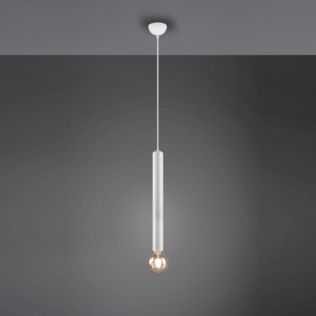 Lampadario 1 luce attacco E27 (lampadina esclusa). Struttura in metallo bianco opaco, design tubolare minimalista. Altezza regolabile fino a 150 cm. Ideale per illuminare cucine, camere e spazi moderni con luce uniforme.