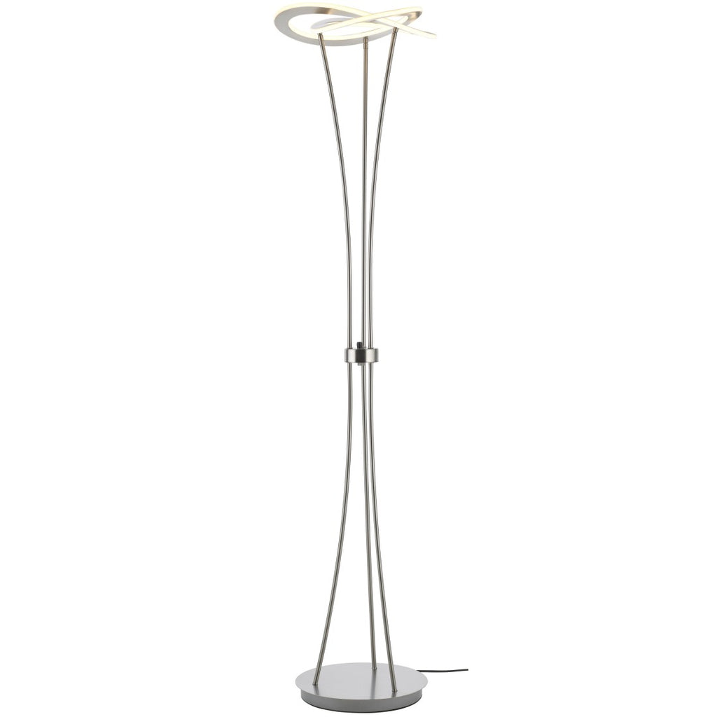 OAKLAND piantana LED 25W, 2750 Lumen, dal design moderno alta 170 cm colore acciaio satinato. Luce bianco caldo 3.000K con dimmer integrato