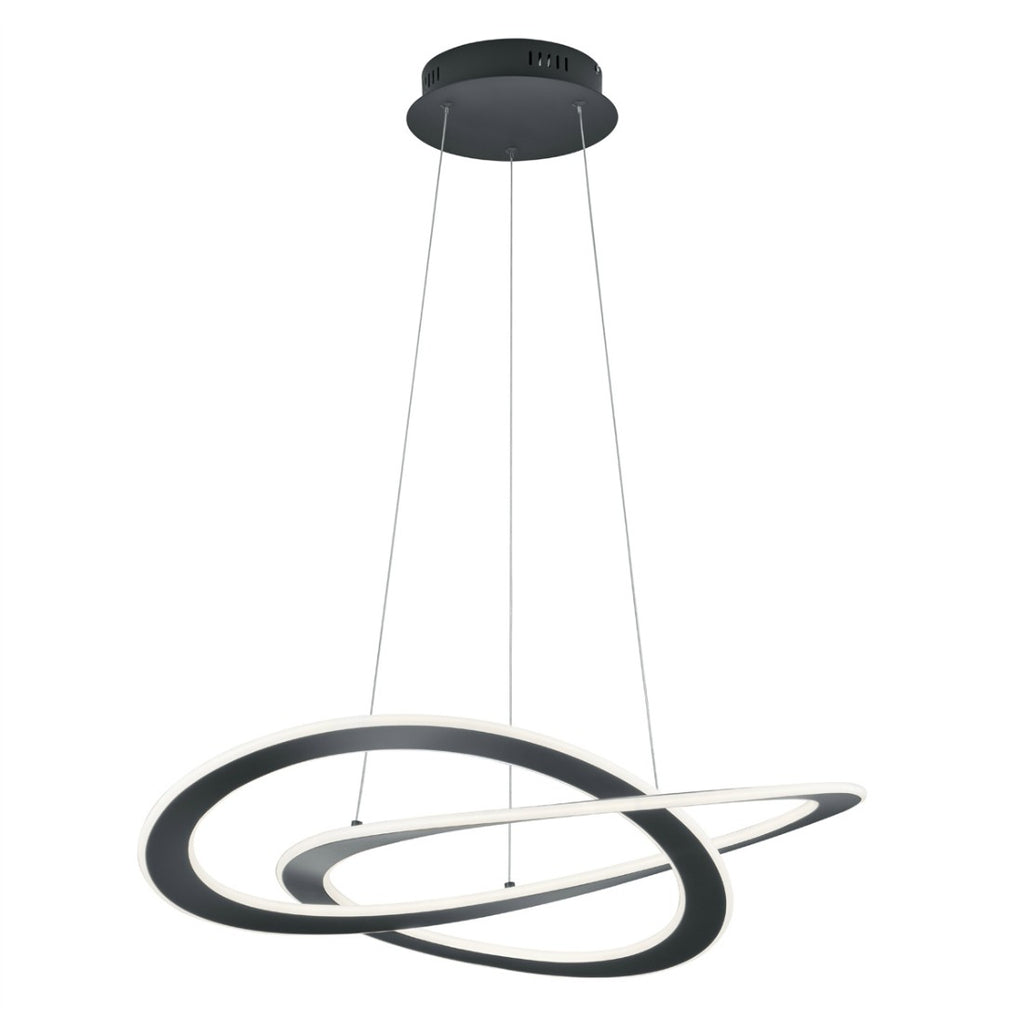 Lampadario LED 52W, 5650 lumen, luce bianco caldo 3000K. Corpo in metallo grigio antracite, diametro 70 cm. 3 intensità luminose regolabili tramite interruttore. Durata 50.000 ore, garanzia 5 anni.