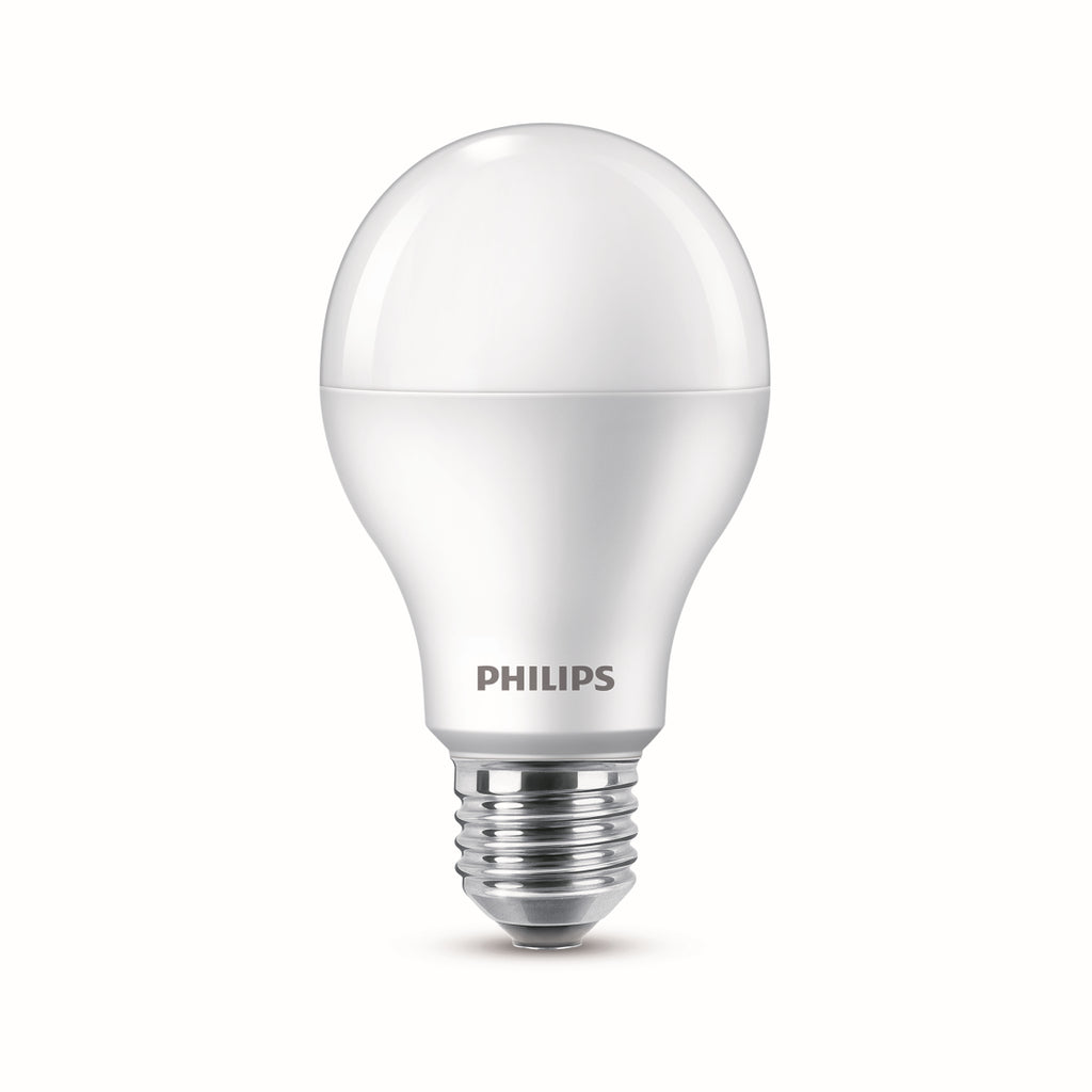 Confezione da 3 lampadine LED Philips A67 con attacco E27, potenza 13W, 1521 lumen, luce bianco naturale 4000K. Equivalenti a 100W alogene, con durata di 15.000 ore e risparmio energetico fino al 90%. Ampiezza di illuminazione 150°.