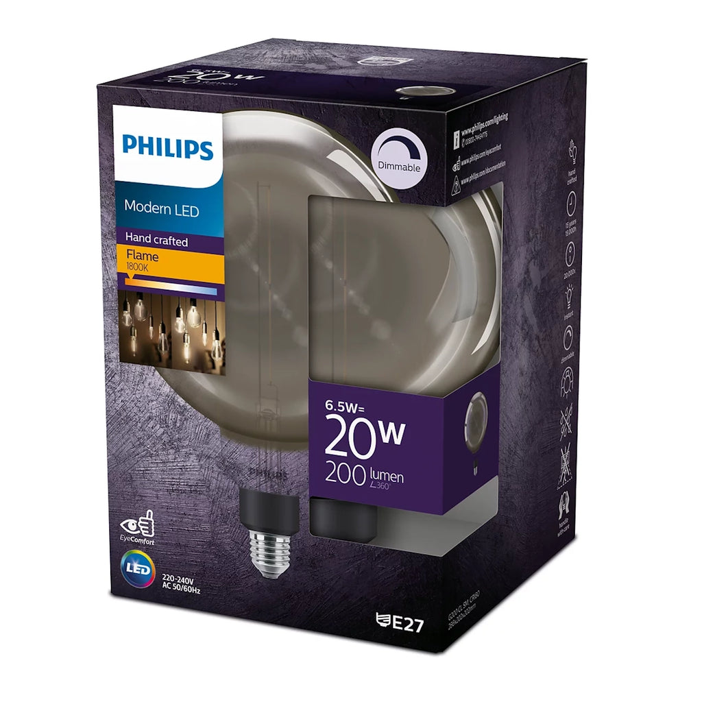 Grazie alla tecnologia LED EyeComfort, la luce è stabile e confortevole per la vista, ideale per un’illuminazione senza sfarfallio. La lampadina è dimmerabile: puoi regolare l’intensità luminosa in base alle tue esigenze, creando la giusta atmosfera in soggiorno, camera da letto, ristoranti o locali con stile retrò.