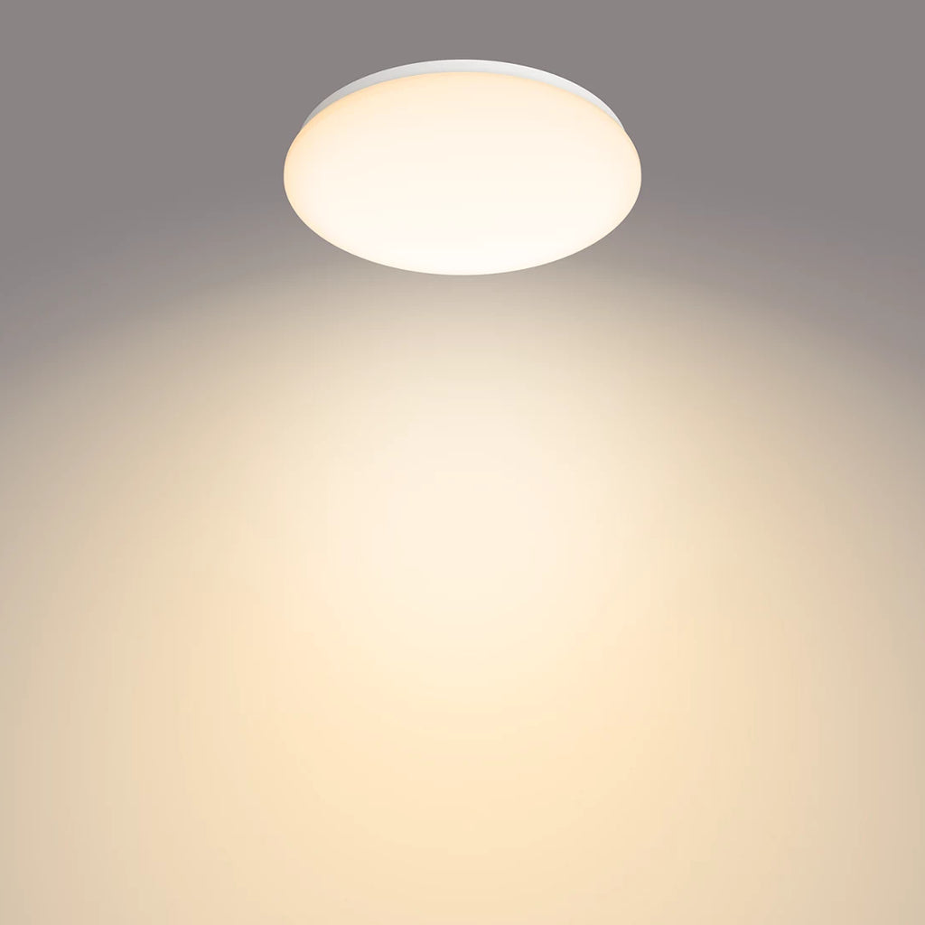 La plafoniera Philips Moire LED da 17W offre 1700 lumen di luce bianco caldo 2700K, perfetta per creare un’atmosfera accogliente e rilassante. Le tecnologie Philips EyeComfort e Interlaced Optics garantiscono una luce stabile, uniforme e priva di sfarfallii, ideale per camere, soggiorni e corridoi. Realizzata in plastica bianca Ø32 cm, è facile da pulire, semplice da installare e rappresenta una soluzione LED di qualità con prezzo competitivo, ideale per chi cerca prestazioni elevate e design moderno. Non dimmerabile, con una durata di 15.000 ore e 5 anni di garanzia.