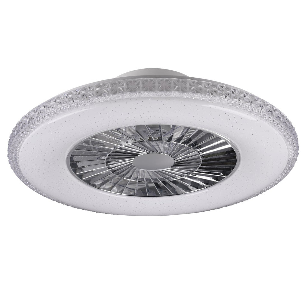 Plafoniera bianca con bordo cristallo e ventilatore LED