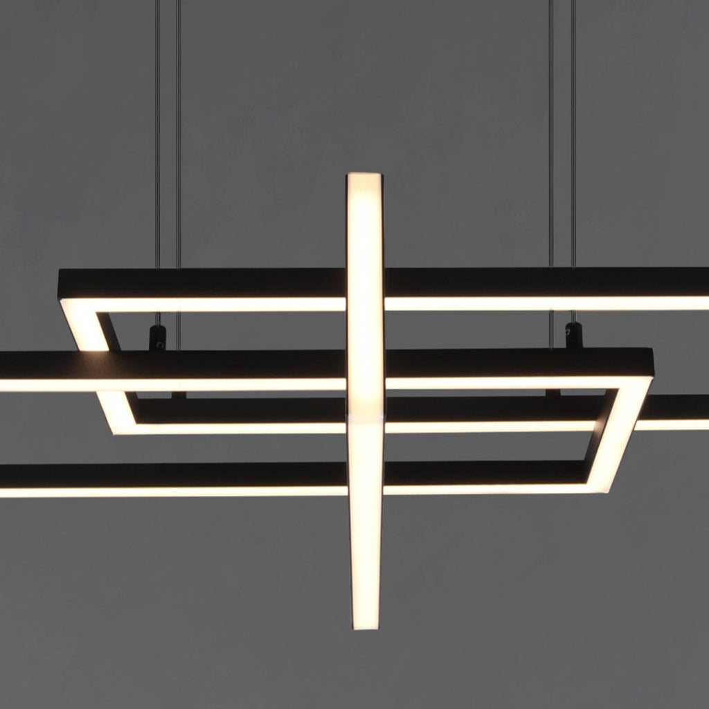 Il lampadario LED Salinas da 34W produce 4200 lumen di luce bianco caldo 3000K. Realizzato in metallo con finitura nera, misura 100×40 cm e ha altezza regolabile fino a 150 cm. Dotato di tecnologia SwitchDimmer per regolare tre livelli di intensità luminosa.