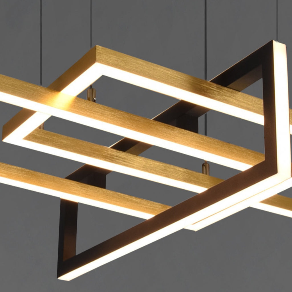 Con dimensioni di 100×40 cm e altezza regolabile fino a 150 cm, questa sospensione LED offre un’illuminazione ampia e diffusa, perfetta sopra tavoli o isole. La finitura nero opaco con dettagli oro crea un contrasto sofisticato adatto a interni di carattere.