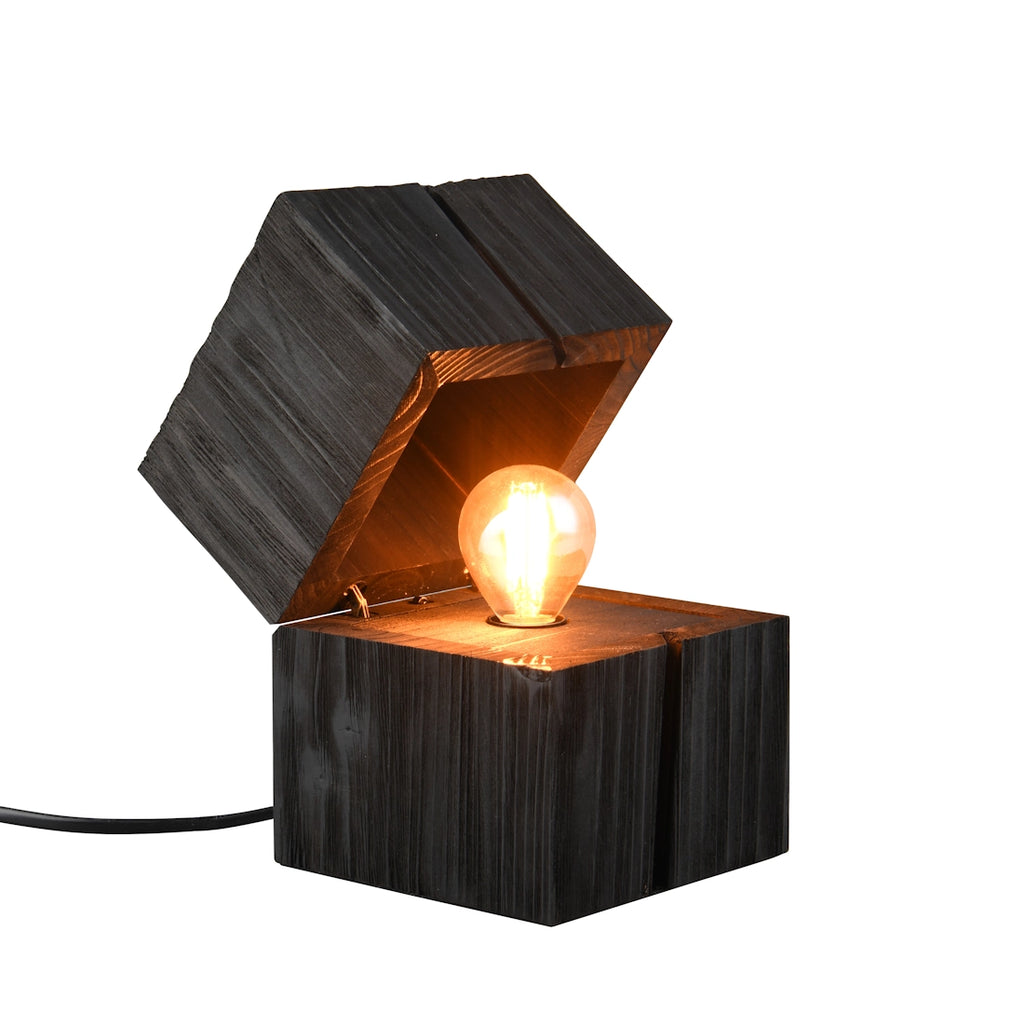 Lampada da tavolo Treasure in legno con design a scrigno. Interruttore automatico all’apertura, luce LED E14 2W 2700K inclusa. Disponibile in legno naturale, bianco o nero. Ideale per scrivanie, comodini e ambienti dallo stile moderno e naturale.