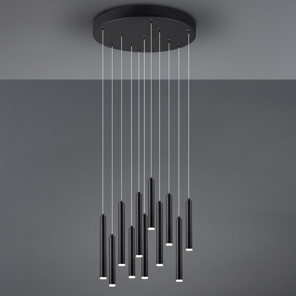 Lampadario moderno LED nero con 11 tubi pendenti